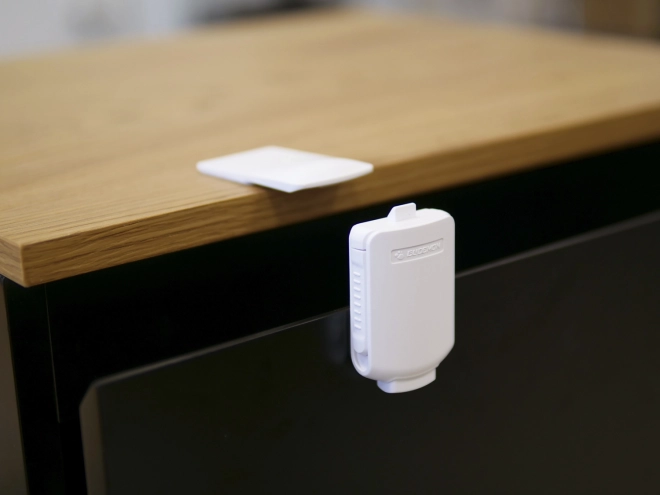 Zajistěte bezpečnost svého domova s praktickým zámkem na zásuvky a skříňky. Tento zámek zabraňuje dětem v přístupu k obsahu nábytku a je snadno instalovatelný pomocí lepicí pásky.