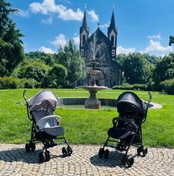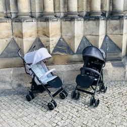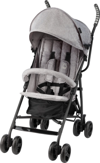 Sedátko je vybaveno polstrovanými bezpečnostními pouty a lze jej polohovat do dvou pozic pro co největší pohodlí dítěte. Prostorná bouda s letním kšiltem a okénkem