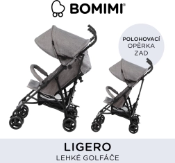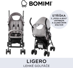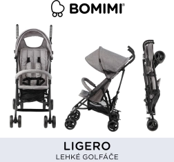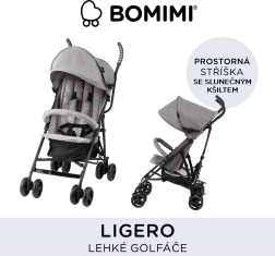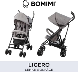 Bomimi Ligero je ideální volbou pro rodiče, kteří hledají lehké a skládací střešní golfky vhodné pro městské prostředí i delší výlety. Vhodné pro děti od 6 měsíců do 15 kg, přičemž jejich maximální nosnost je 17 kg. Golfky se vyznačují jednoduchým skládacím mechanismem ala deštník, který umožňuje snadnou přenositelnost a skladování.