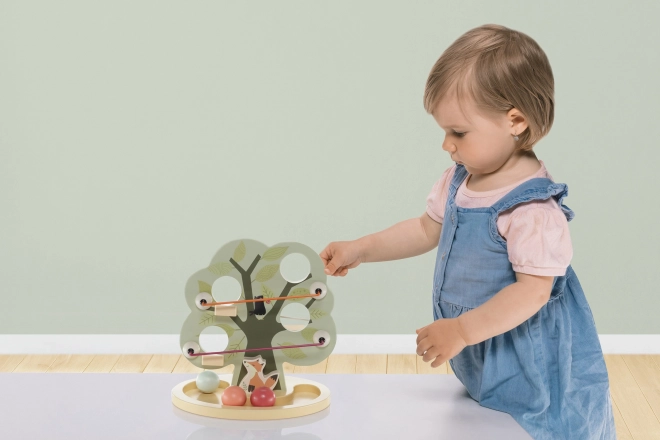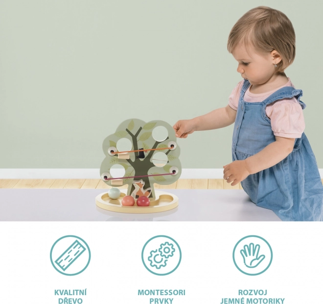 Tato půvabná kuličkodráha ve tvaru stromu s motivem lišky zaujme děti svým vzhledem i funkcí. Otevírá cestu k fantazii a logickému myšlení, zatímco kuličky postupně propadají otvory a sjíždějí do drážky ve spodní části, kde se zachytí pro další hru.