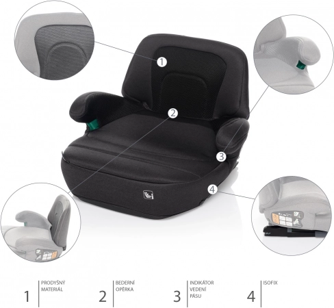 iBooster je moderní autosedačka–podsedák pro větší děti, která splňuje přísnou evropskou normu i-Size. Díky jasně značeným vodicím prvkům správně nastavíte vedení pásu přes rameno a bok, aby dítě cestovalo bezpečně a pohodlně.