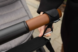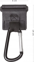 Odolná kovová karabina unese každodenní zátěž a kvalitní textilní řemínek je šetrný k rukojeti kočárku. Minimalistický černý design se hodí k jakémukoli stylu i barvě kočárku.