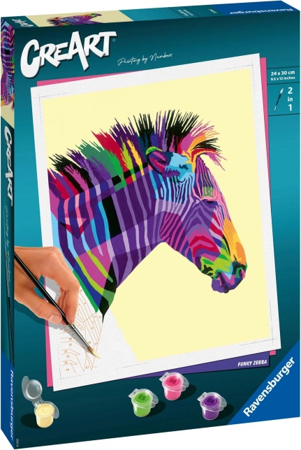 Objevte zábavu s kreativní sadou CreArt – malování podle čísel s motivem Funky Zebra. Ideální pro děti od 12 let, sada nabízí snadný postup krok za krokem, relaxační tvoření a hotový obraz velikosti 240 × 300 mm, který si můžete hrdě vystavit.