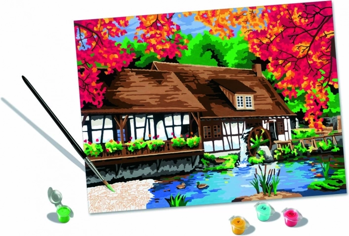 Tato prémiová sada CreArt s motivem malebného mlýna umožňuje krok za krokem vytvořit působivý obraz. Barevně označené plochy a číselné vodiče vedou k jistému výsledku, takže si malování užijí začátečníci i pokročilí. Hotové dílo se skvěle hodí k zarámování a vystavení.