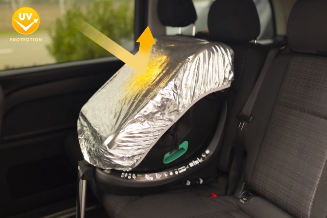 Stříbrná vrstva odráží sluneční záření a pomáhá udržet autosedačku chladnější i po delším stání na slunci.