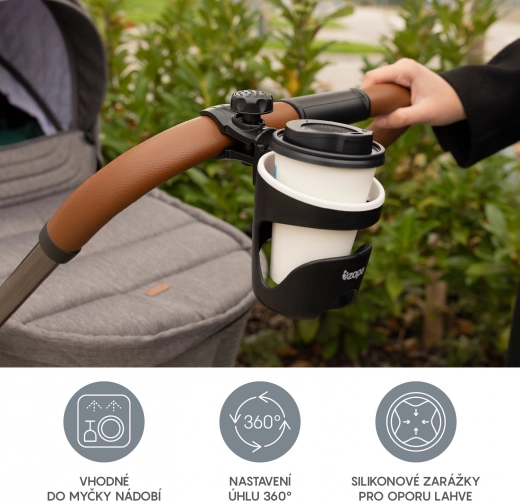 Praktický držák nápojů pro kočárky i kola udrží váš nápoj vždy po ruce a v bezpečí. Díky otočné hlavě a pevné svorce nabízí stabilní uchycení, kompatibilitu s většinou kelímků a lahví a snadnou instalaci bez nářadí. Vyroben z odolných a ekologičtějších materiálů, s možností rychlého sejmutí a mytí v myčce.