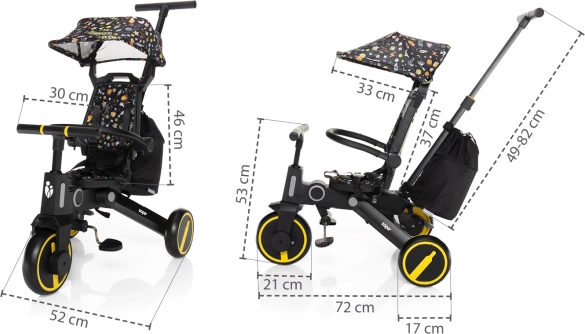 Užijte si první samostatné jízdy s univerzální tříkolkou Nova 2 v elegantním provedení Cosmic Black. Nabízí kombinaci kočárku a tříkolky s výškově nastavitelnou vodicí tyčí, funkcí vypnutí řídítek, odnímatelnými pedály/opěrkou nohou a polstrovaným sedákem i opěrkou zad pro maximální pohodlí. O klid rodičů se postará 5bodový pás, polohovatelná hrazda, brzda kol a odnímatelná stříška proti slunci.