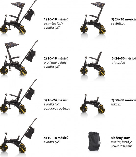 - Až 7 způsobů využití od kočárkového režimu po samostatnou jízdu
