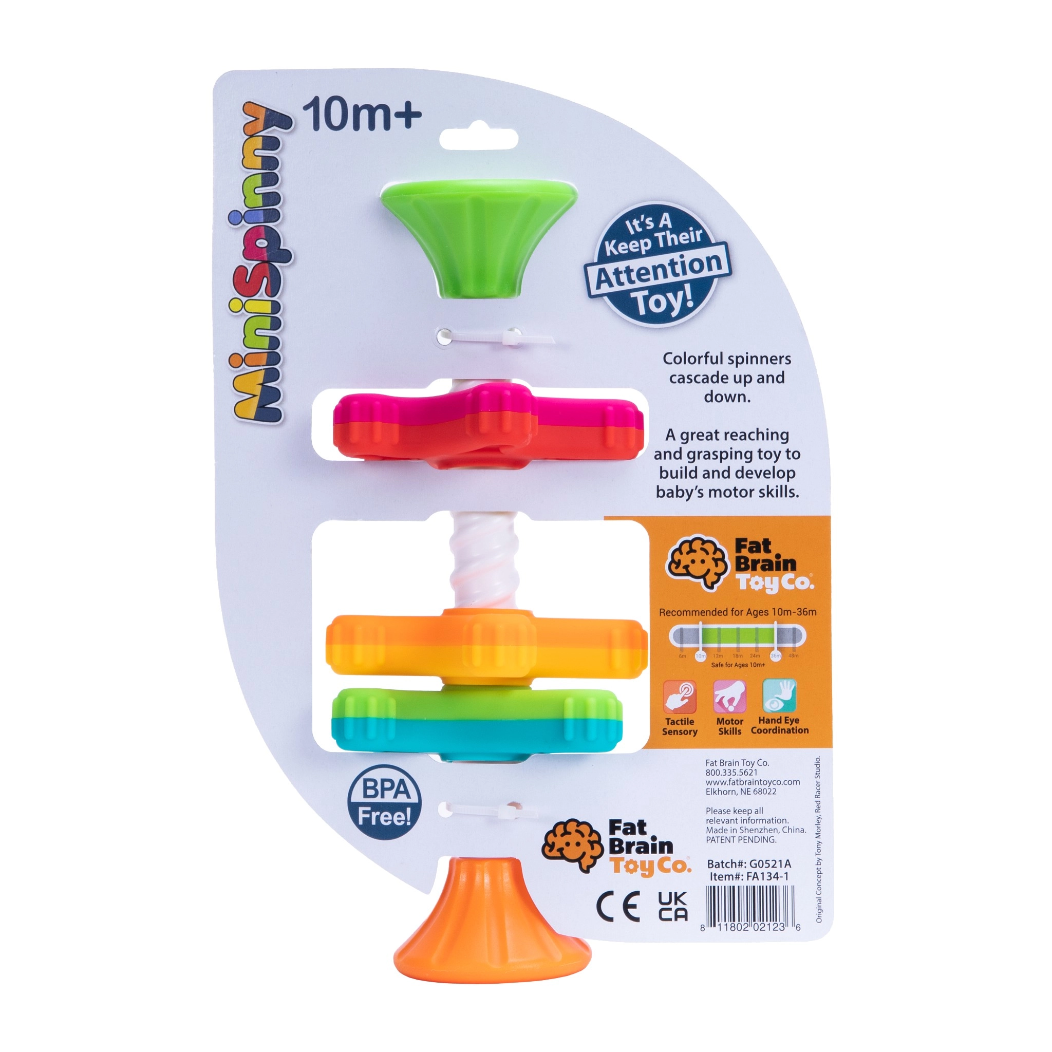 Díky přísavce hračku snadno upevníte na stůl, podnos židličky či okno – nic se neztratí a dílky drží pohromadě. MiniSpinny je skvělá na doma, na cestách i do koupelny. Bezpečný plast bez BPA a ftalátů zaručuje bezstarostnou hru.