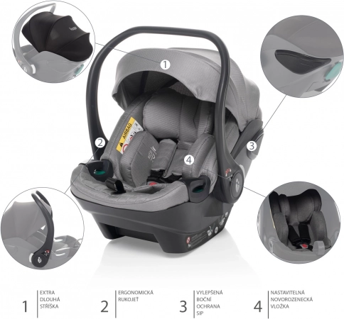 Autosedačka XS Plus i-Size je navržena pro maximální bezpečí a komfort těch nejmenších od prvních dnů života až do výšky 80 cm. Splňuje přísnou normu i-Size, má polypropylenový korpus pro efektivní pohlcení nárazu a technologii boční ochrany SIP. Díky extra dlouhé stříšce chrání miminko před sluncem a odvětraná zadní část snižuje pocení.