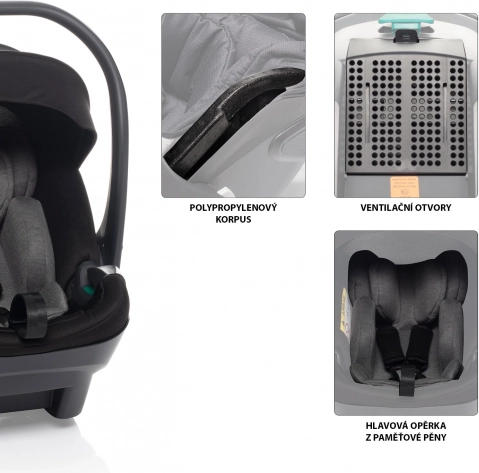 Polypropylenový korpus výborně pohlcuje nárazy a spolu s technologií SIP zajišťuje špičkovou boční ochranu. Sedačka splňuje nejnovější evropskou normu i-Size.