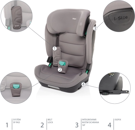 - Maximální ochrana: SP PAD, Belt Lock a boční SIP dle ECE R129 i-Size.