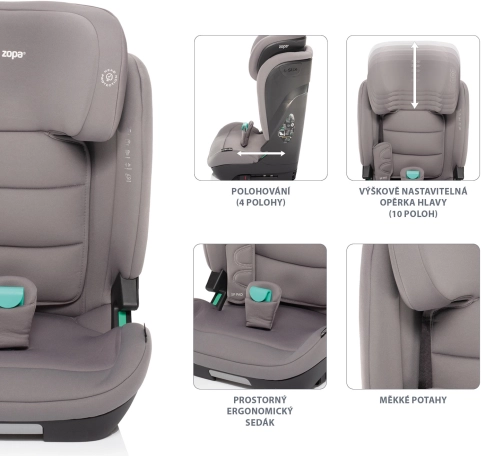 - Snadná instalace: ISOFIX nebo bezpečnostní pás, nezávislé ISOFIX a vodiče pásu.