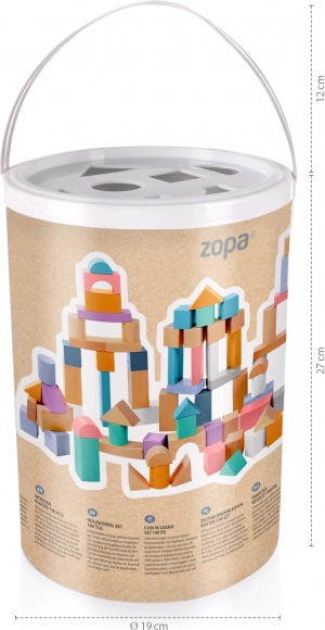 Sada obsahuje praktický kyblík na snadné skladování a přenášení. Víčko kyblíku navíc slouží jako hra na rozpoznávání tvarů, což je skvělé pro další učení a zábavu. Díky praktickému poutku můžete vzít kostky kamkoliv s sebou, což dětem umožní hrát si doma nebo venku.