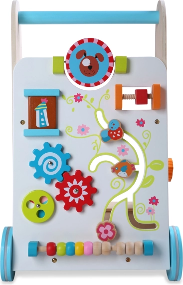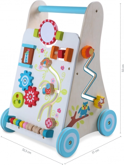 Krok za krokem do světa objevování! Dřevěné aktivity chodítko nejenže podporuje nácvik chůze, ale je také vybaveno mnoha prvky, které rozvíjejí koordinaci oko-ruka. Vaše dítě zažije spoustu zábavy, a zároveň bude hra podporovat jeho psychomotorický vývoj.