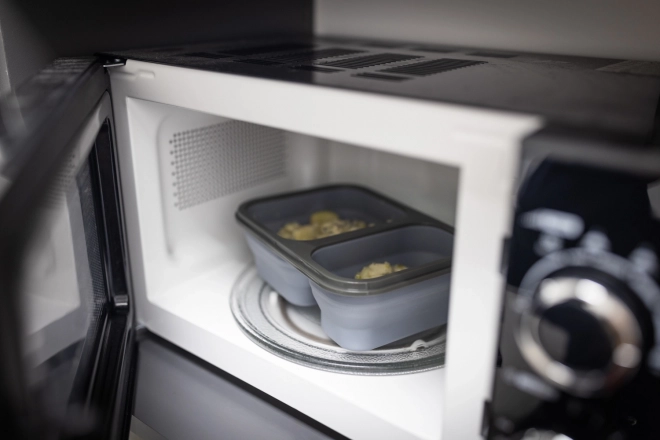 Dvě samostatné komory udrží jídla odděleně – ideální pro kombinaci hlavního chodu a přílohy nebo sladké a slané svačiny. Box je vhodný do mikrovlnné trouby (ohřev bez víčka), myčky nádobí i ledničky, snadno se čistí a je skvělou volbou pro děti i dospělé.