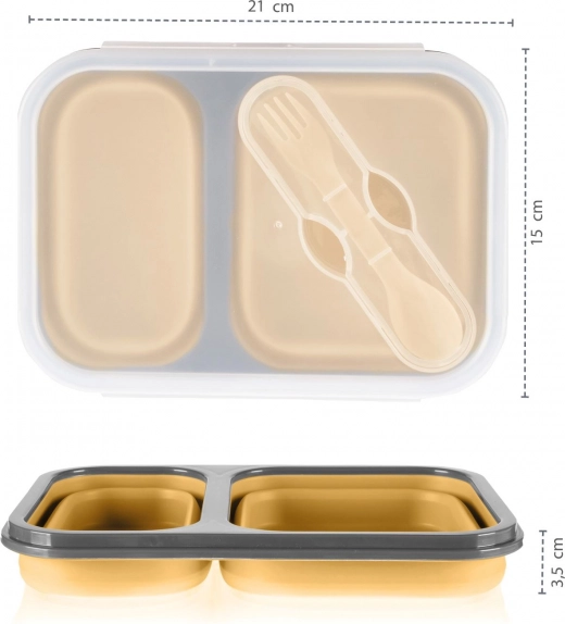 Silikonový skládací svačinový box s příborem Mustard Yellow
