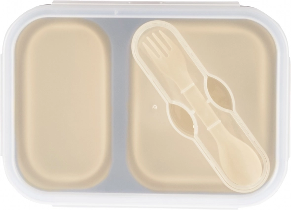 Víčko spolehlivě těsní a v integrované přihrádce ukrývá praktický spork (lžička + vidlička), takže můžete jíst kdekoliv.