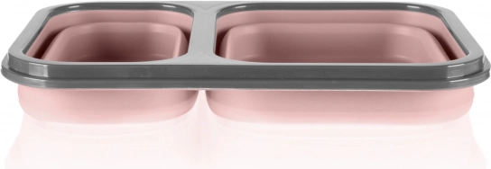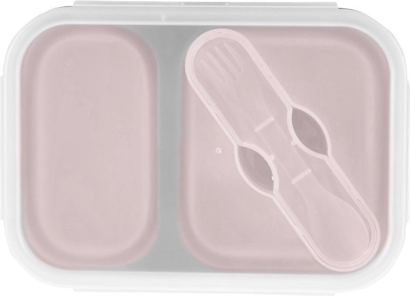 Silikonový svačinový box se dvěma oddíly a příborem, starorůžový