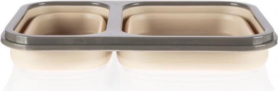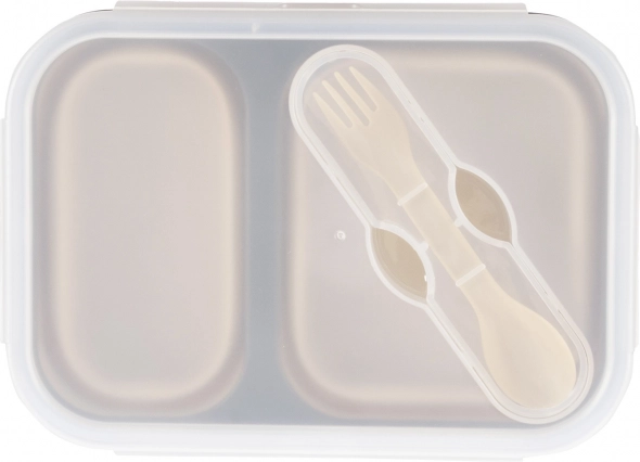 Silikonový skládací svačinový box se dvěma přihrádkami a příborem, pískově béžový