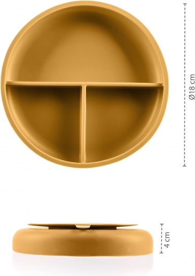 Praktický silikonový talířek s přísavkou pro děti nabízí 3 oddělené přihrádky pro pestré servírování. Je z 100% potravinářského silikonu, bez BPA, PVC a ftalátů, je odolný proti rozbití a skvrnám a lze jej dát do myčky, mikrovlnky i lednice. Silná protiskluzová přísavka udrží talířek pevně na místě a podpoří samostatné krmení bez nepořádku.