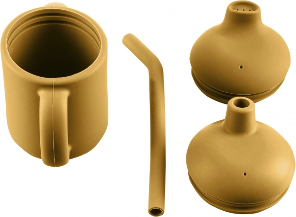 Hrníček je vyroben z měkkého a odolného potravinářského silikonu, který je příjemný na dotek, netoxický a nehrozí jeho rozbití při pádu. Materiál neabsorbuje pachy, je odolný proti skvrnám a snadno se čistí – stačí vložit do myčky nebo krátce sterilizovat. Hořčicově žluté provedení se skvěle kombinuje s dalšími silikonovými doplňky.