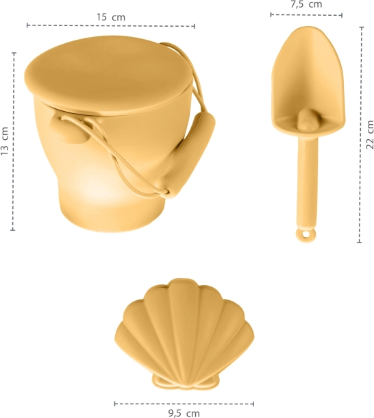 Díky ergonomickým tvarům a snadnému úchopu si s ním poradí i malé dětské ruce. 100% potravinářský silikon je netoxický a vhodný pro každodenní použití. Set je skvělým tipem na dárek k narozeninám, na dovolenou k moři nebo do pískoviště u domu.
