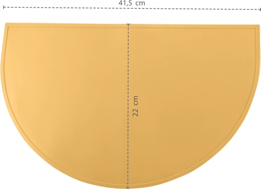 Tato půlkruhová silikonová podložka poskytuje dětem i dospělým hygienické a bezpečné prostředí při jídle i hraní. Díky okrajovým drážkám zachytí polévky a nápoje, protiskluzový povrch udrží nádobí na místě a vodotěsný materiál spolehlivě ochrání desku stolu.