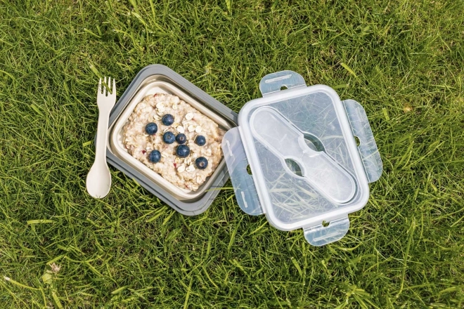 Víčko výborně těsní a ukrývá praktický spork, takže máte příbor vždy po ruce.