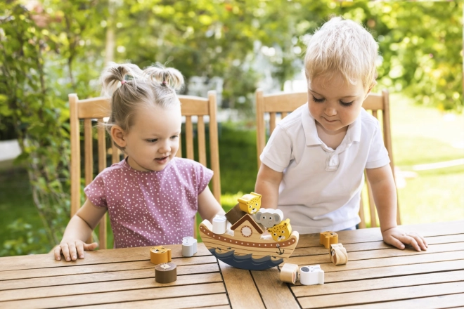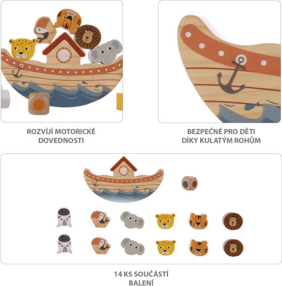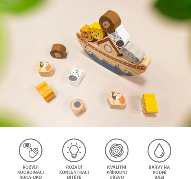 Objevte zábavnou a vzdělávací hračku pro děti od 3 let: dřevěnou balanční archu se zvířátky, která rozvíjí jemnou motoriku, trpělivost a koordinaci ruka-oko. Děti postupně vyvažují roztomilá zvířátka na loď a učí se principům rovnováhy a gravitace – ideální pro jednoho i více hráčů.