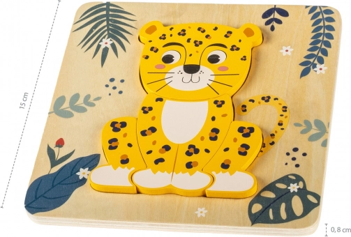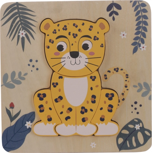 Tato dřevěná skládačka s veselým leopardem je skvělou volbou pro první puzzle vašeho dítěte. Hladké dřevěné dílky se dobře drží v ruce, jsou pevné a odolné, takže zvládnou i nadšené hraní. Bezpečné, netoxické barvy zajišťují, že je produkt vhodný pro děti již od 12 měsíců.