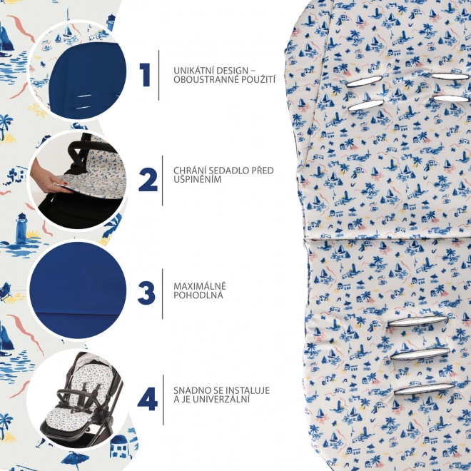 Stylový námořní motiv s možností oboustranného použití osvěží vzhled kočárku a prodlouží čistý vzhled podložky.