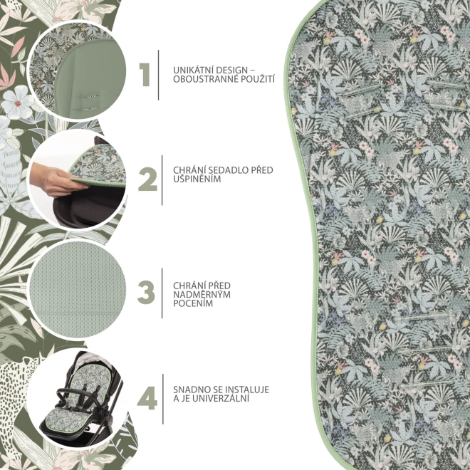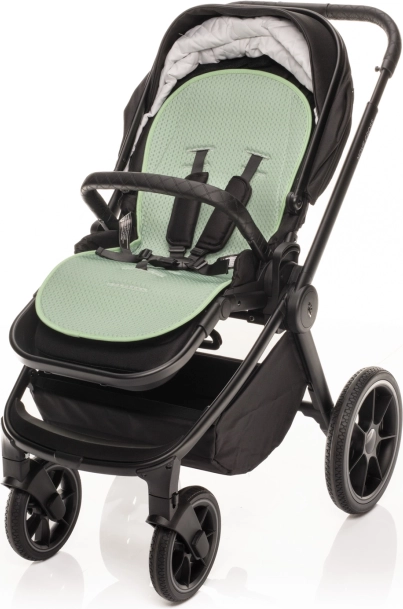 Podložka chrání sedací část kočárku před potem a nečistotami. Odolný polyester se snadno čistí a rychle schne.