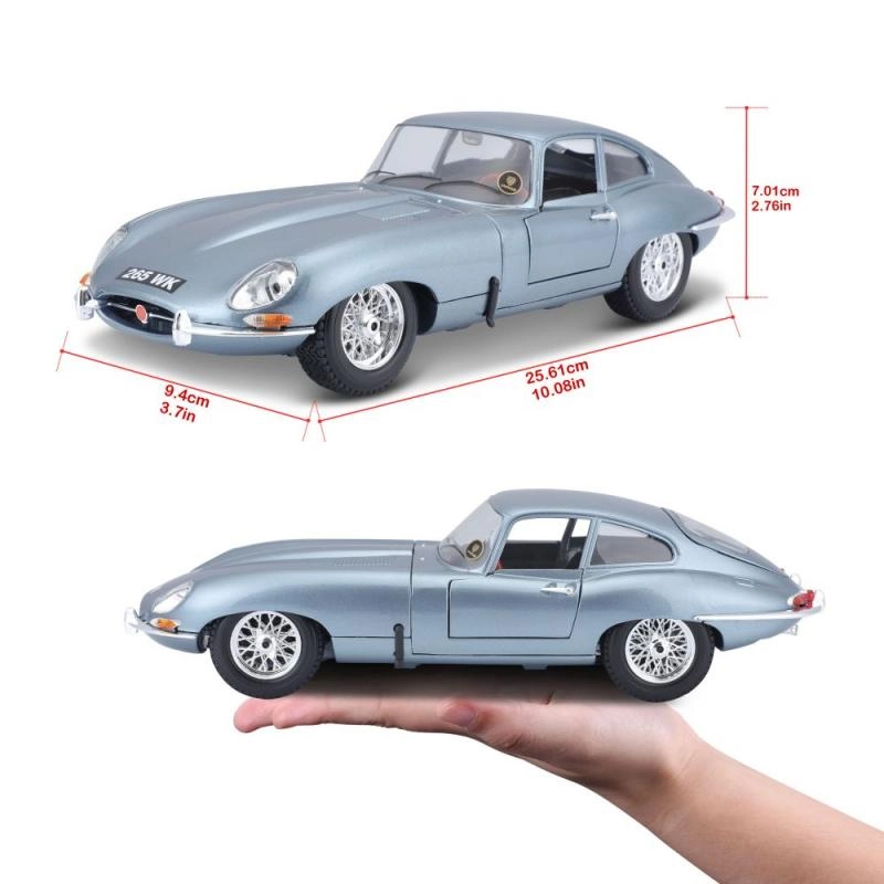 Die‑cast provedení s množstvím jemných detailů, chromovanými prvky a autentickými proporcemi legendárního E‑Type.
