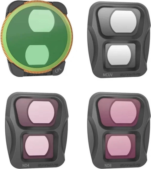 Užijte si profesionální výsledky s Filtry Sunnylife pro DJI AIR 3. Tato sada obsahuje čtyři filtry: MCUV, CPL, ND4 a ND8.