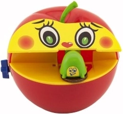 Tato plastová pokladnička napodobuje oblíbené jablko a je ideální pro děti od tří let. Díky mechanickému natahování na klíček je použití zábavné a snadné. Po vložení mince červík minci uchopí a zanese ji do útrob jablka, což děti motivuje k šetření.
