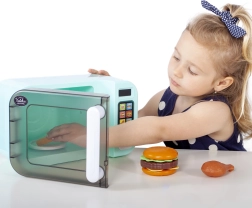 Tato stylová dětská mikrovlnná trouba je ideální doplněk do každé dětské kuchyňky. Po zapnutí programu se talíř uvnitř začne otáčet, mikrovlnka svítí a vydává zvuky jako skutečný spotřebič. Díky dotykovému panelu děti snadno „volí“ programy a učí se základům kuchyňských činností formou hry.