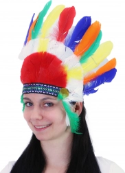 Stylová indiánská čelenka zdobená barevnými hebkými pírky je perfektní doplňek ke kostýmu indiána na karneval či maškarní. Vzor se může lišit od vyobrazení.