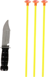 Součástí je i plastový nůž pro tematické hry a obal na šípy pro přehledné uložení a snadné přenášení.