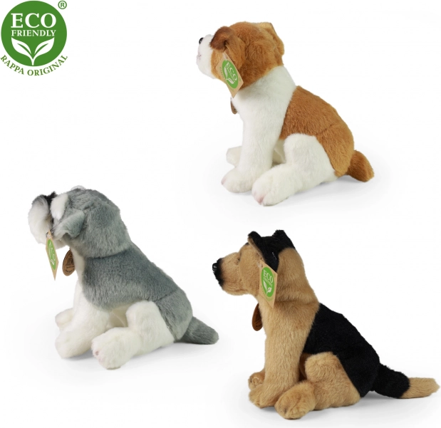 Objevte hebkého kamaráda do postýlky i na cesty. Tento sedící plyšový pejsek je k dostání ve třech roztomilých variantách a díky kvalitnímu materiálu si udrží tvar i po dlouhém mazlení. Výplň z recyklovaných PET lahví je zcela bezpečná, na dotek nerozeznatelná od běžné výplně a atestovaná pro děti.
