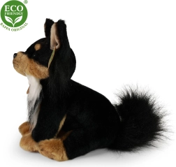 Tento sedící plyšový pejsek čivava o délce cca 24 cm je hebký na dotek a bezpečný i pro nejmenší děti. Výplň z recyklovaných PET lahví je testovaná, kvalitní a na omak nerozeznatelná od běžné výplně. Skvělá volba pro rodiče, kteří hledají bezpečnou, kvalitní a ekologickou hračku.