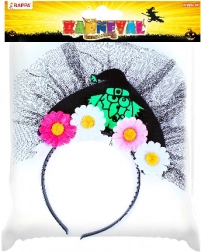 Obohaťte svůj kostým na Halloween nebo karneval s touto čelenkou čarodějnice, zdobenou barevnými kvítky – ideální doplněk pro každý večírek.