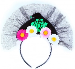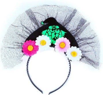 Tato jedinečná čelenka kombinuje kouzelný design s barevnými kvítky, které dodají vašemu vzhledu šarm. Je perfektní pro dospělé, kteří chtějí upoutat pozornost na Halloween nebo během karnevalových oslav.