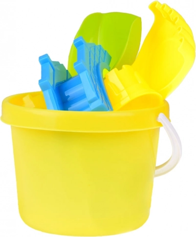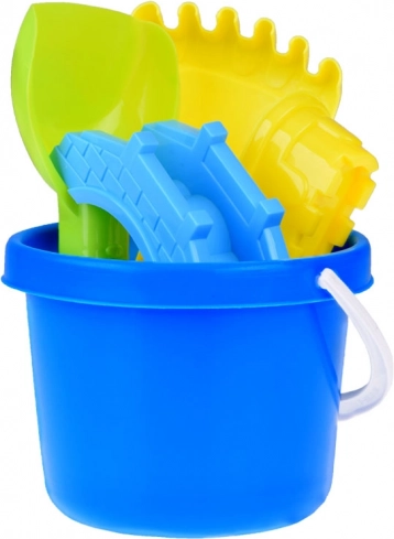 Vše, co děti potřebují ke stavění hradů a mostů: kyblík, lopatka, hrábě a 3 formičky v zářivých barvách. Podněcuje kreativní hru a spolupráci.