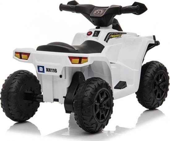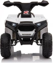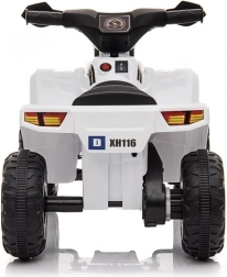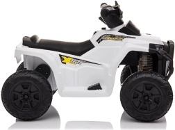 Tato stylová dětská elektrická čtyřkolka potěší moderním vzhledem a praktickým zpracováním. Široká kola s výrazným dezénem pomáhají držet stabilitu na různých površích a snadno uchopitelná řídítka podporují rozvoj jemné i hrubé motoriky.
