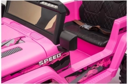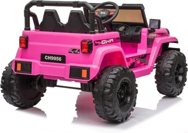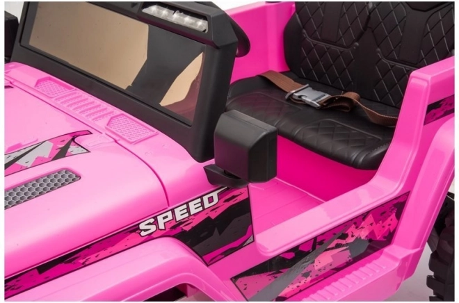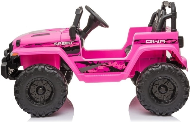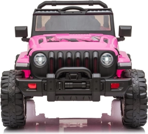 Stylové dětské elektrické autíčko v růžové barvě inspirované off-road vozem potěší malé řidiče robustním vzhledem, velkými koly a realistickými detaily. Nabízí stabilní jízdu, funkční světlomety a volant pro přirozené řízení. Ideální pro venkovní zábavu a rozvoj motoriky díky odolné konstrukci, velkým kolům a realistickým prvkům.
