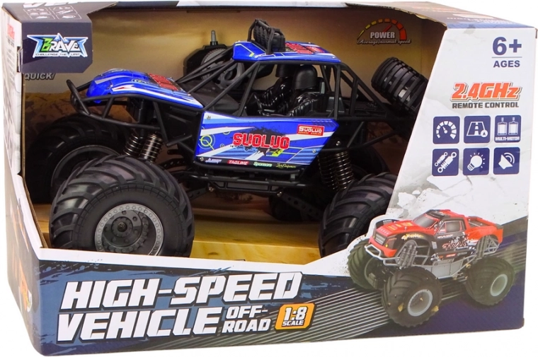 Objevte adrenalin s terénním RC autem v měřítku 1:8 v atraktivní modré barvě. Díky velkým profilovaným pneumatikám a účinným tlumičům si poradí s nerovným povrchem, zatímco silný magnetický motor poskytne dynamickou jízdu až 12 km/h. 2,4 GHz ovládání zaručuje plynulé řízení bez rušení s dosahem do 30 metrů.