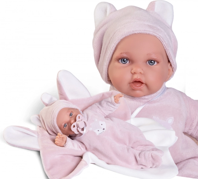 Objevte kouzlo španělských panenek s Antonio Juan. Tato realistická panenka je ručně vyrobená s důrazem na každý detail. Její měkké látkové tělo a hlava a končetiny z kvalitního měkčeného vinylu poskytují příjemný pocit na dotek.