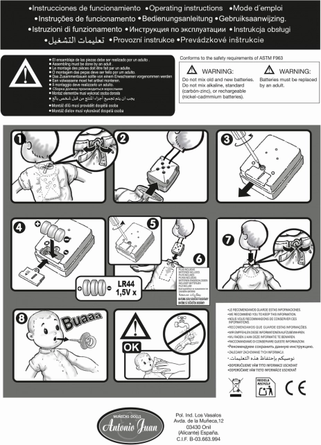 Antonio Juan balí každou panenku do dárkové krabice, což z ní činí ideální dárek pro děti od 3 let. Součástí balení jsou 3 knoflíkové baterie LR44, které umožňují okamžité používání panaenky.