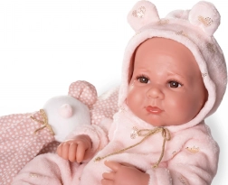 Panenka LUCA od značky ANTONIO JUAN je lifelike miminko s celovinylovým tělem, které vyniká realistickými faldíky, proporcemi a precizními detaily včetně pohlaví. Měkčený vinyl je mimořádně příjemný na dotek a snadno se udržuje, díky čemuž je panenka ideální pro každodenní hraní i péči.